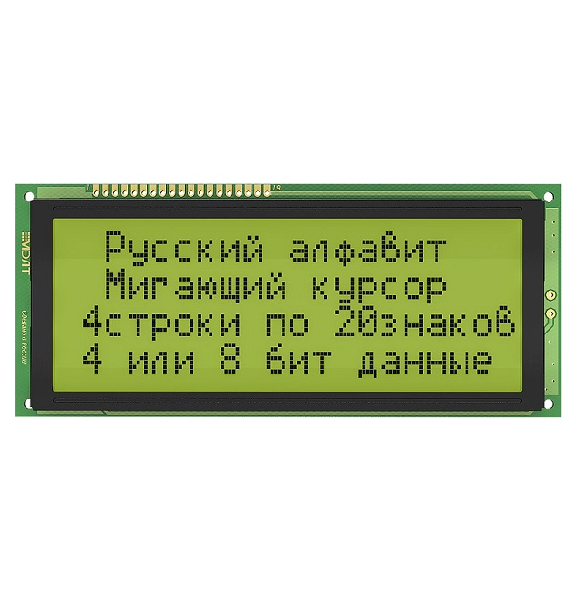 Тип дисплея LCD STN , Режим символьный , Разрешение 20х4 , Тип встроенного контроллера КБ1013ВГ6 , Цвет отображения информации желто-зеленый , Особенности STN желтый позитивный , Напряжение питания, min 4.5 В, Напряжение питания, max 5.5 В, Длина 146 мм, Ширина 62.5 мм, Высота 13.6 мм, Рабочая температура -20 °C, Рабочая температура 70 °C