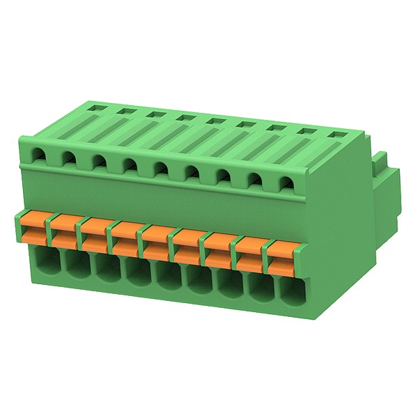 Клемма зажимная разъёмная серии 15EDGKD-2.5; 9 контактов; шаг 2.5 мм; 5 А; 250 В; 0.2…0.5 мм2; прямая.