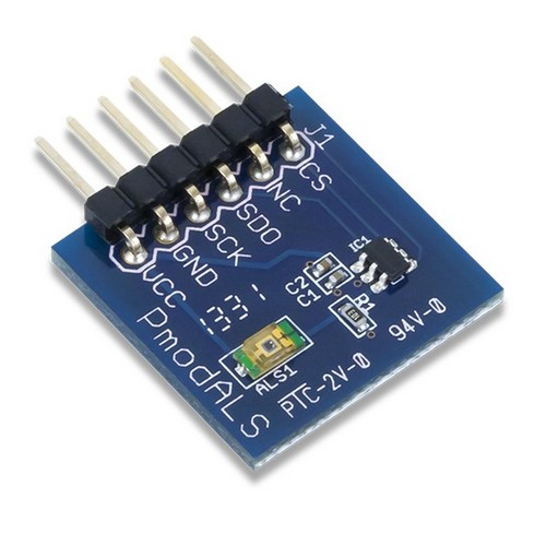 Pmod ALS осуществляет преобразование света в цифровые данные с помощью датчика внешней освещенности. Даный модуль разработан на основе аналого-цифрового преобразователя ADC081S021 Texas Instruments и датчика освещенности TEMT6000X01 Vishay Semiconductor.