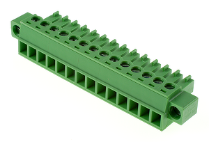 Шаг между контактами 3.81 мм, Тип разъема Клеммник на провод , Количество контактов 14 , Рабочий ток контактов 14 А, Рабочее напряжение между контактами 320 В, Сечение присоединяемых проводов, min 0.2 мм², Сечение присоединяемых проводов, max 1.5 мм², Способ фиксации провода Винт