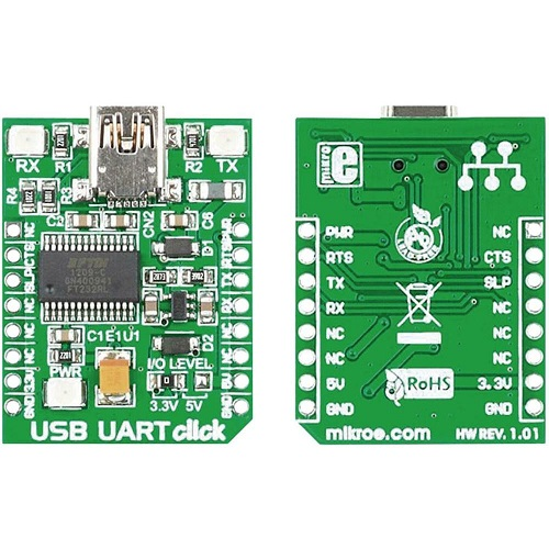 Функции Serial to USB , Комплектация Board , Тип Interface , Платформа MikroBUS Click , Компоненты FT232R