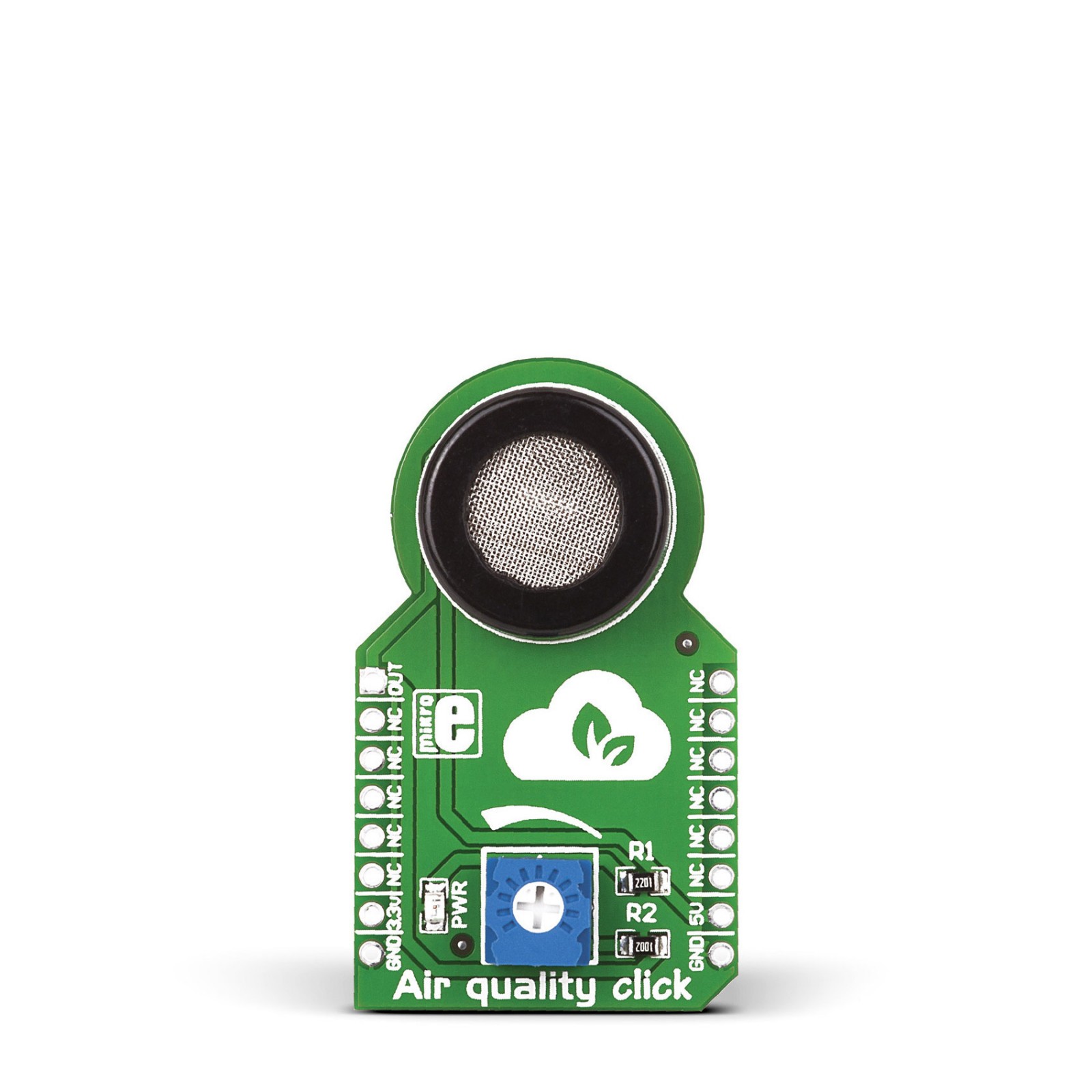 Air quality Click - это плата расширения в форм-факторе mikroBUS с датчиком MQ-135 для обнаружения ядовитых газов, которые влияют на качество воздуха в домах и офисах. Напряжение питания 5 В
