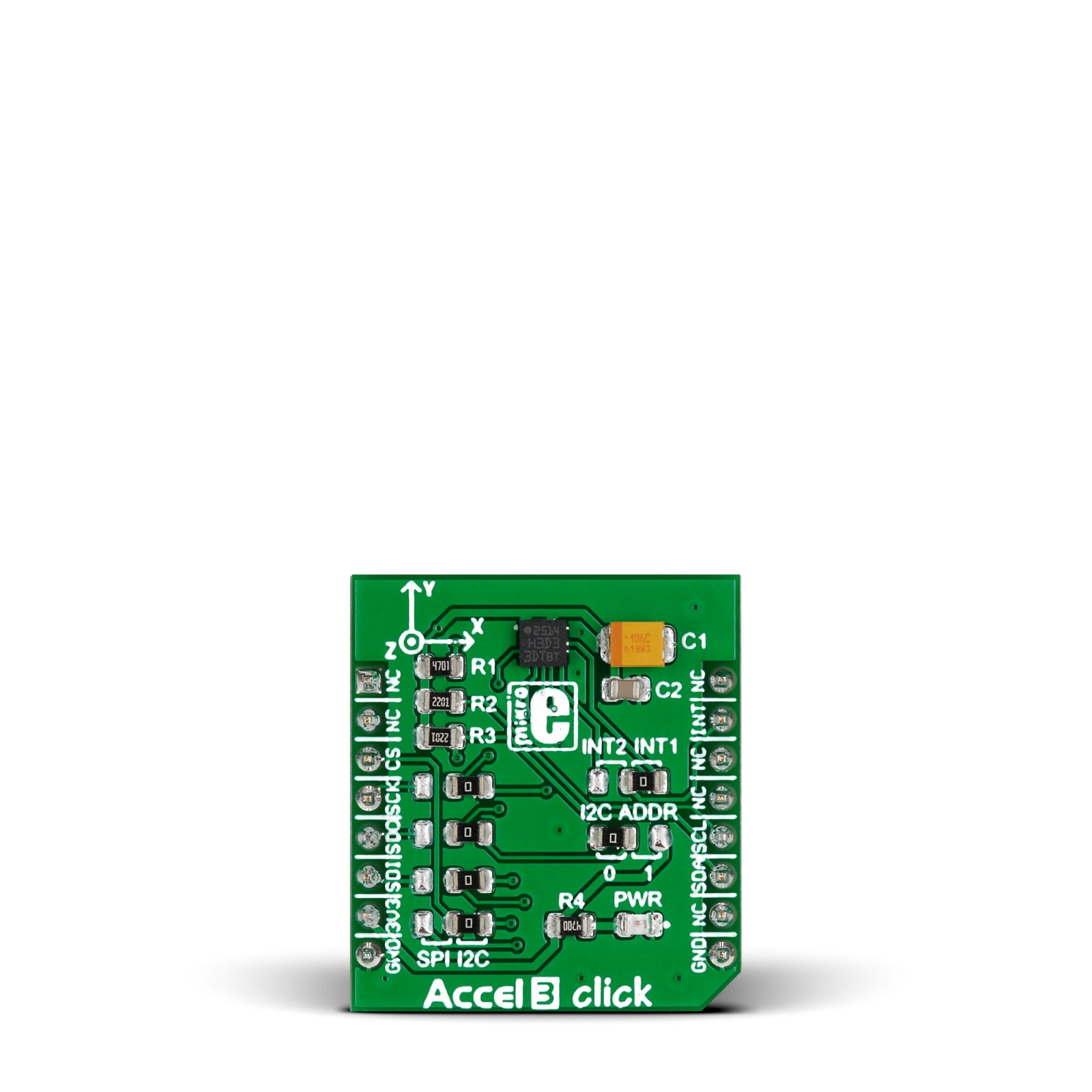 Accel 3 click - это плата расширения в форм-факторе mikroBUS с маломощным высокопроизводительным 3-осевым линейным акселерометром H3LIS331DL. Питание 3.3 В; интерфейс SPI или I2C