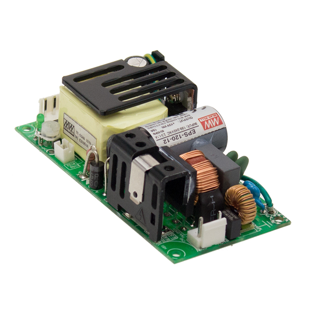 Источники питания от компании Mean Well - открытого исполнения серии EPS-120 компактных размеров с низким потреблением мощности без нагрузки (<0,3Вт).