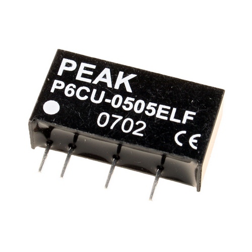 DC-DC преобразователи мощностью 1 Вт, корпус: для монтажа на печатную плату SIP7, производства компании PEAK серии P6CG, P6CU, P6LU.
