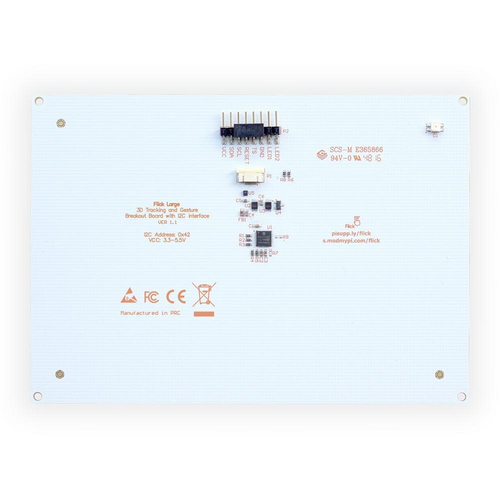 PS-FLICK-I2C от Pi Supply – это сенсорная панель на основе контроллера распознавания жестов позволяющая вводить данные естественными движениями рук и пальцев в свободном пространстве. Распознать можно касания, нажатия, взмахи и круговые движения. Основой датчика является MGC3130 – первое в мире трехмерное устройство контроля жестов с помощью патентованной технологии GestIC от Microchip.
