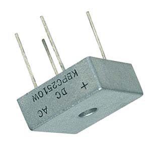 Диодный мост; однофазный; 25 А; 1000 В; Iобр 10 мА; Ifsm 400 А; -55..150 °C; монтаж в отверстия.