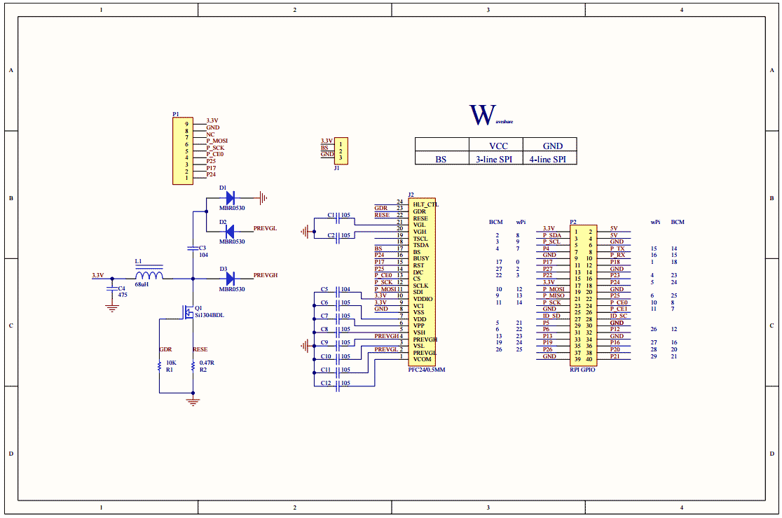 Рис. 4. Схема принципиальная электрическая дисплейного модуля 2.13inch e-Paper HAT [С]