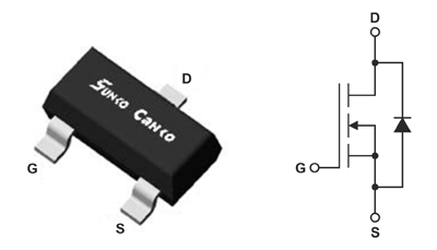 Рис. 3. Транзистор YJL02N10A производства компании SUNCO в корпусе SOT-23