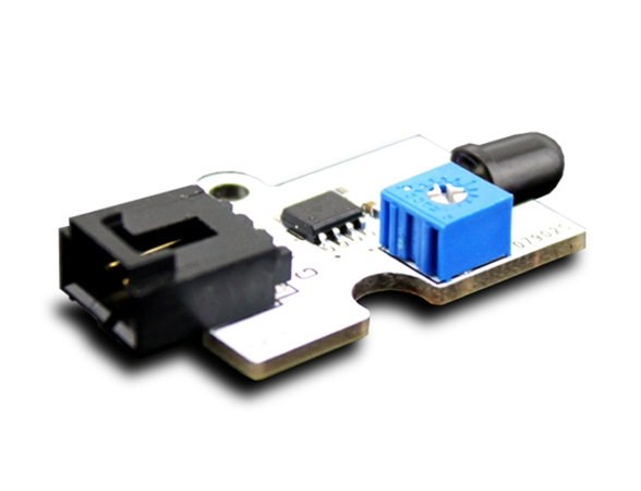 Датчик пламени KIT MP545 представляет собой модуль, собранный на ИК-приемнике (ИК-зонд). Он простой по конструкции, удобный и очень чувствительный. Модуль может быть использован для обнаружения источника возгорания. С его помощью можно сделать простого пожарного робота или пожарную сигнализацию. Следует отметить, что рабочая температура инфракрасного датчика обычно составляет -25…85°С, поэтому, во избежание повреждения в процессе использования, поддерживайте достаточное расстояние между датчиком и пламенем. |