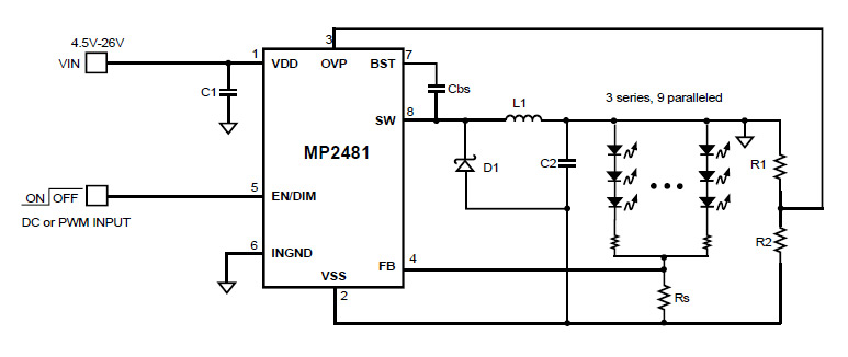 MP2481DH – новая микросхема источника питания светодиодов от компании Monolithic Power System.