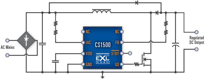 Корректор CS1500 поддерживает все функции безопасности, необходимые для создания надежного и компактного модуля PFC. Кроме этого, он имеет контроль режима управления, чтобы свести к минимуму потери при малой нагрузке или в режиме ожидания.