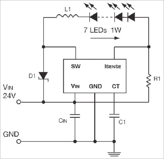 до 7 (1...3 Вт) светодиодов при Vвх = 24 В.